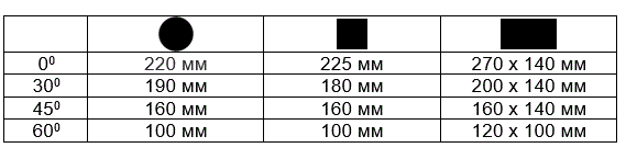 | Різ під кутами | До 60° |