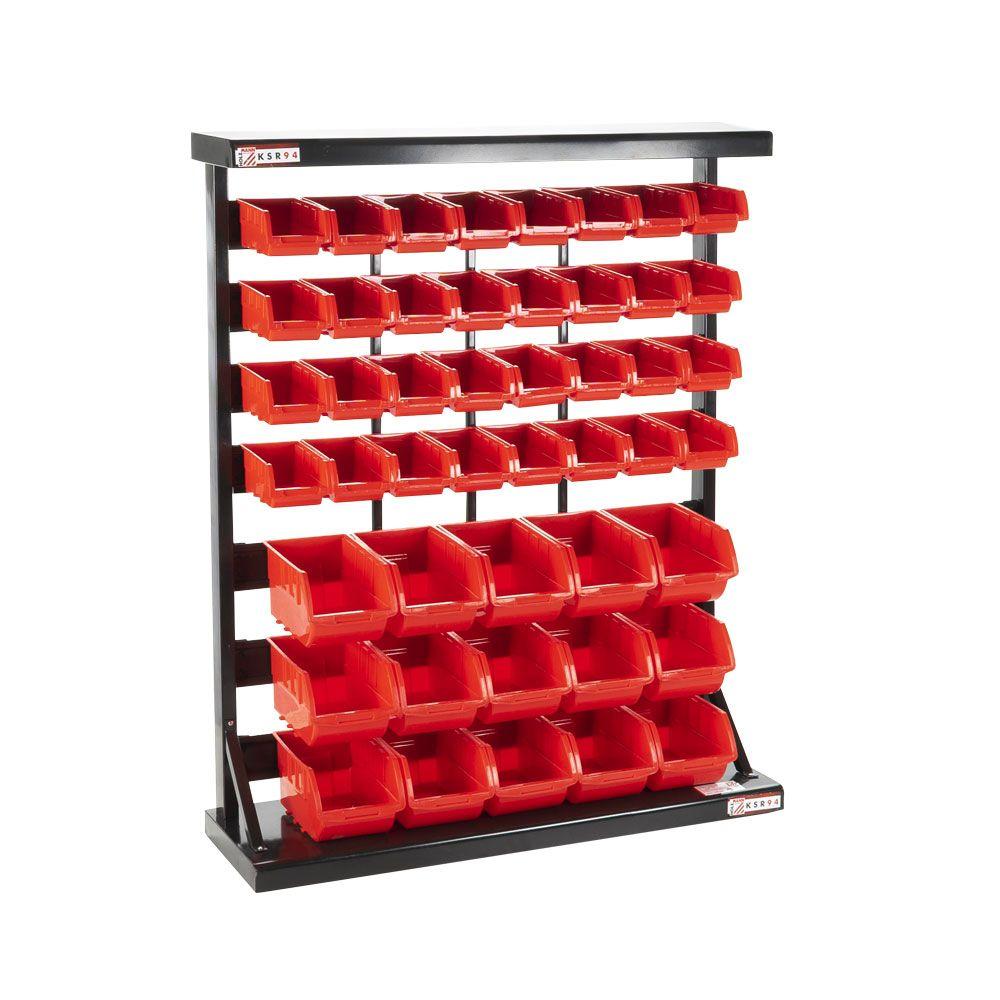 Односторонній стелаж для інструментів Holzmann KSR94 - це чудовий спосіб організувати компактне і зручне зберігання невеликого інструменту, аксесуарів і запчастин. Має 47 відділень - 15 великих ящиків (240х150х125 мм) і 32 маленьких ящика (165х105х75 мм) з міцного пластику. Основа стелажа виготовлена з листового металу з порошковим покриттям.