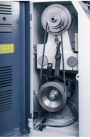 Здійснюється від двигуна у вигляді зубчастого ременя. Зручна та швидка зміна частоти обертання заготовки шляхом перестановки ременя. Кінцевий вимикач не дозволяє увімкнути верстат при відкритій кришці, що відповідає вимогам безпеки ЄС.